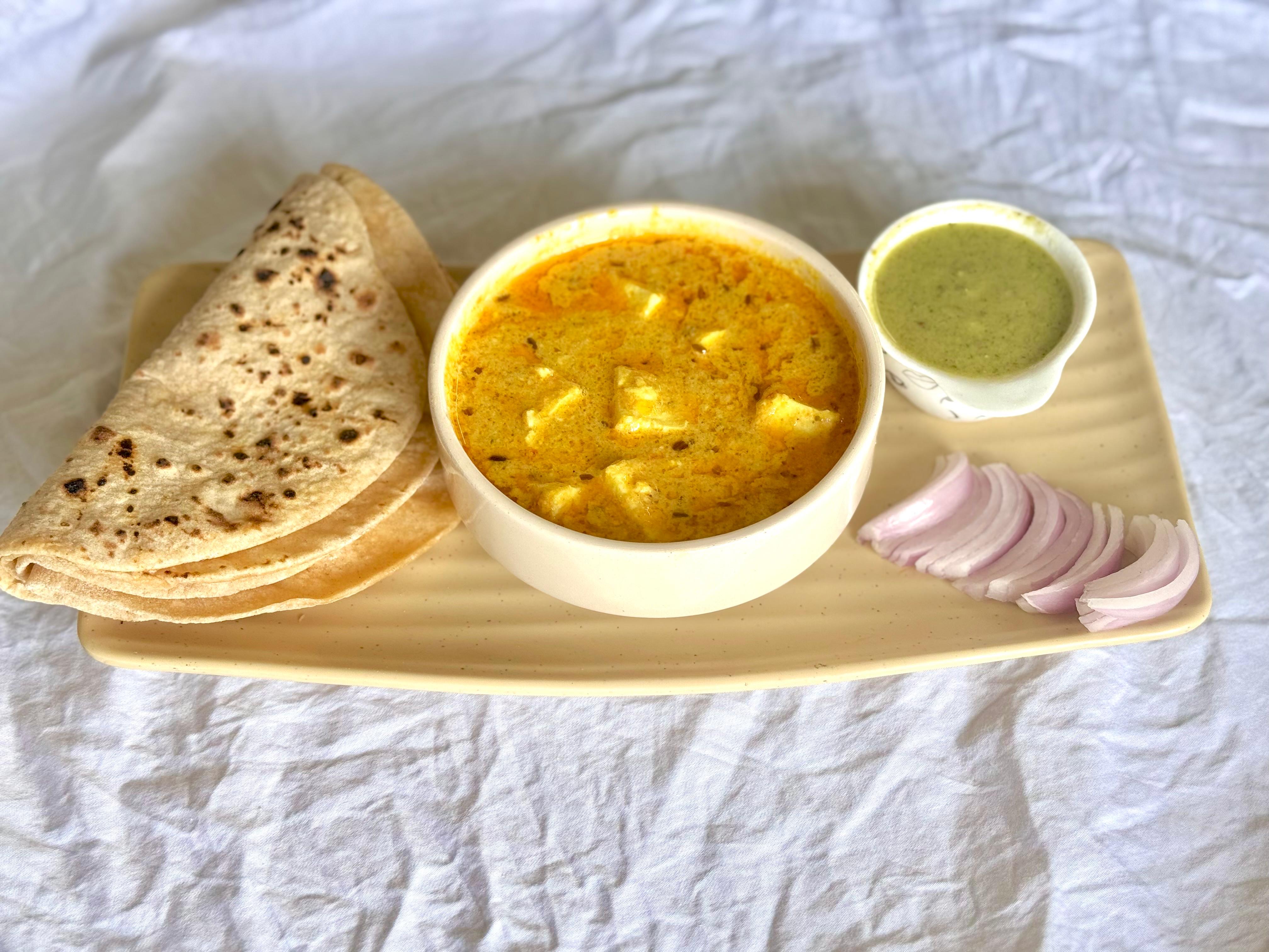 Served with 4 chapatis,salad,chutney.